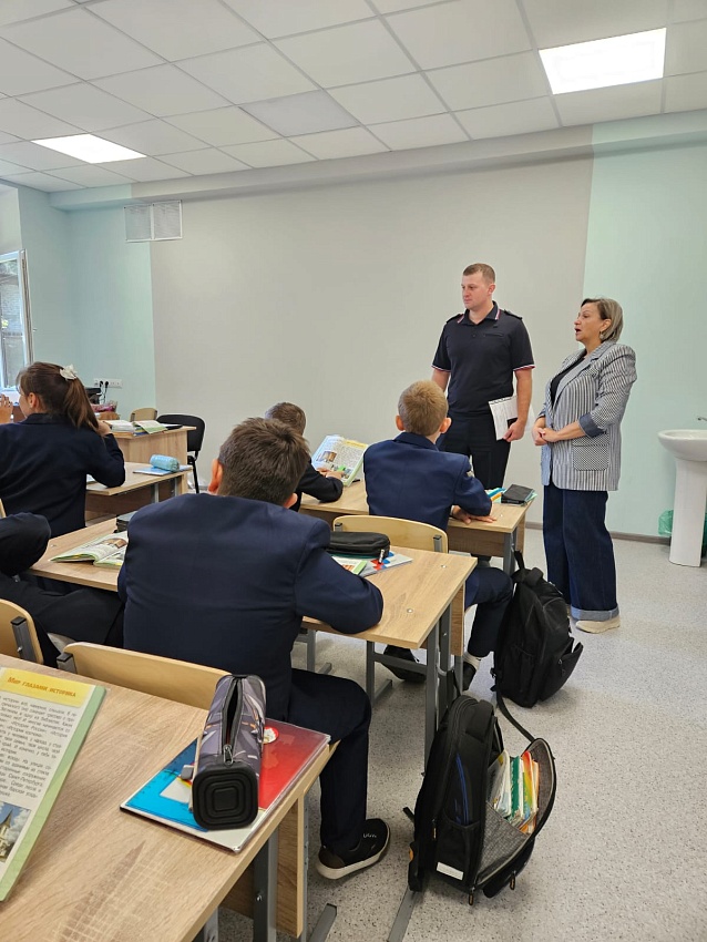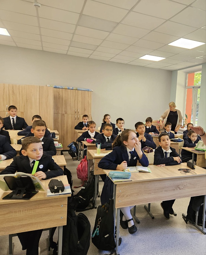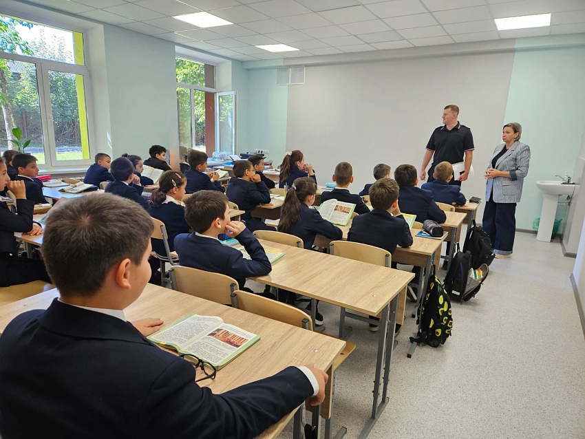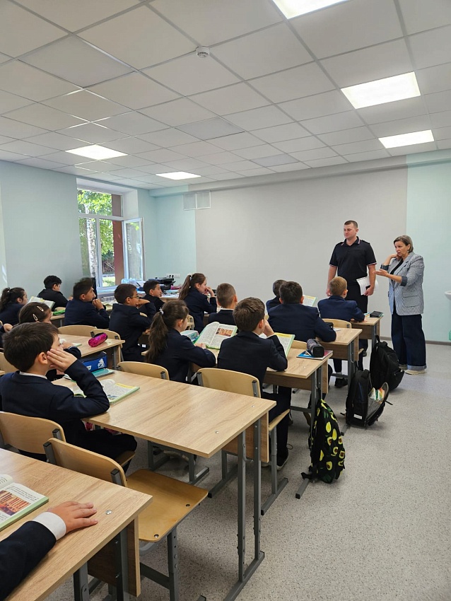 Сотрудник Управления Госавтоинспекции МВД по РСО-Алания ст. лейтенант полиции Кундухов З.Т. провел беседу с учениками 3 класса на тему: "Мы учимся соблюдать правила безопасного поведения на улицах и дорогах".