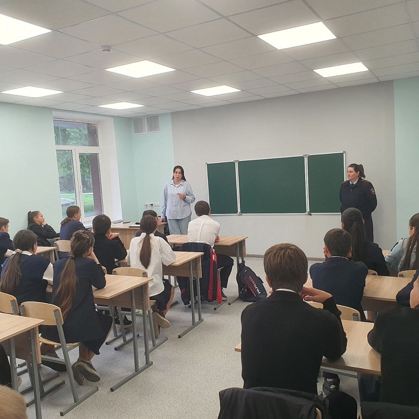 Сегодня 01.10.2025 года состоялась встреча наших 8-классников со старшим специалистом- экспертом УКОН МВД по РСО-Алания Таутиевой Залиной Львовной и инспектором ПДН, капитаном полиции Вардзеловой Екатериной Сергеевной. Разговор состоялся по вопросам разного вида зависимостей, правонарушений несовершеннолетних, антитеррористической безопасности. Ребята задавали вопросы, внимательно слушали ответы. Вывод сделали следующий: в современном мире необходимо быть юридически подкованным, чтобы не попасть в ситуации, которые могут повлечь за собой крайне негативные последствия!